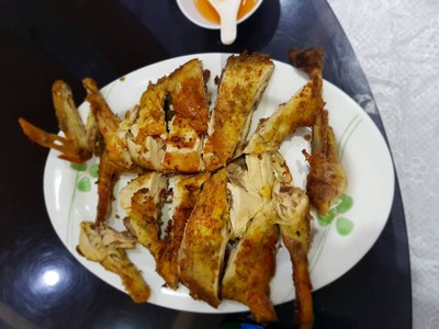 มาดูงานก่อสร้างรัฐภาแห่งใหม่ แล้วพากันมากินอาหารที่ร้านนี้ อยู่ใกล้สีแยกไม่ไกลจากรัฐสภาใหม่ ร้านเป็นร้านเดิมสองชั้น วันนี้จองห้องส่วนตัวด้านบนเป็นโต๊กลมใหญ่นั่งได้ สิบหกคน สั่งอาหารมาหลายอย่างไก่ย่าง เห่าดงหมู(ทุกคนชอบมากรสชาติดี) เต้าหู้ญี่ปุ่นผัดพริกเกลือ (อันนี้ก็อร่อยเพราะสั่งเพิ่มอีกจาน ส้มตำไทย ผัดยอดผักแม้ว ไก่วิเศษ เป็ดตุ๋นมะนาวดอง(มาซดน้ำปิดท้ายดูเพิ่มเติม