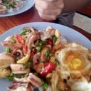 อารมณ์มาเที่ยวทะเล เจอแต่ร้านอาหารทะเล หลายๆมื้อเข้าก็คิดถึงกระเพราเผ็ดสักจาน ขับมาเพลินๆเจอเป้าหมายแบบไม่ได้ตั้งใจ แอบกังวลว่าจะมีอาหารจานเดียวไหม พอดู เมนู โอเคเลย สั่งกระเพราทะเล ไข่ดาว ราดข้าว มาแบบจัดเต็ม ให้เยอะ แถมอร่อย ด้านหน้ายังมี ปลาหมึกย่าง แมงดาย่าง ของแห้งขาย เมนูแบบร้านอาหารก็มีเยอะ ร้านไม่ติดทะเล แต่ก็โล่ง.โปร่ง สะอาด ลองเป็นอีกทางเลือกละกันค่ะดูเพิ่มเติม