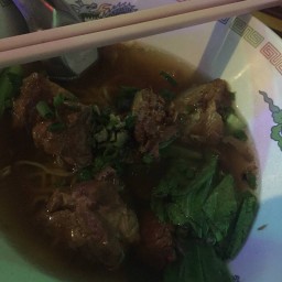 ร้านนี้เป็นทั้งร้านโจ๊ก ร้านก๊วยเตี๋ยว ร้านอาหาร คาราโอเกะ ผับ&เรสเทอรองค่ะ มีครบทุกสิ่ง55555 การบริการดีค่ะ พนักงานรวดเร็ว เป็นกันเองดีค่ะ บรรยกาศ กึ่งผับค่ะ มีดีเจ ค่อยข้างวุ่นวายเพราะมีคนมาจัดงานเลี้ยงเยอะค่ะ เมนูที่ทาน -ไส้กรอก ไม่ค่อยโอค่ะเหมือนใส้กรอก7ไปหน่อยค่ะ -โจ๊ก อร่อยค่ะ ข้าวเนื้อเนียน หมูหวานๆ อร่อยดีค่ะ -เย็นตาโฟหม้อไฟ จานนี้อร่อยค่ะ แซ๊บกำลังดีเลย -แกงสายบัวกะทิปลาทู ไม่ผ่านค่ะ เ...อ่านต่อ