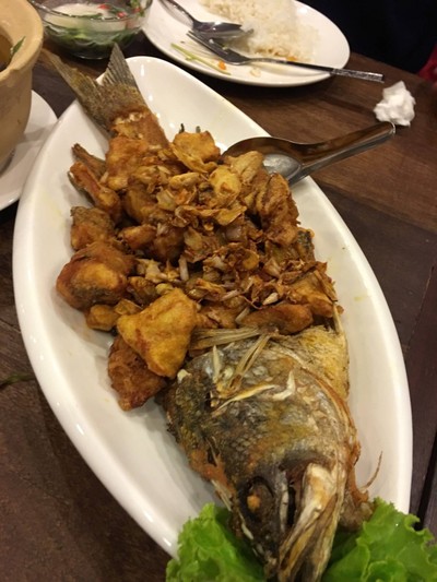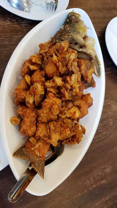 เรือนแม่หลุย น่าจะเป็นร้านอาหารใต้ขึ้นห้างที่ดีที่สุดที่กินมา ปกติกินสาขา Fortune แต่รอบนี้เปลี่ยนมาลอง The Nine บ้าง อาหารทีเด็ดที่สั่งทุกรอบคือ ปลาทอดขมิ้น (ขึ้นราคาเป็น 390 แล้วแฮะ 😓😓😓) อย่างอื่นที่สั่งบ่อยคือ สะตอผัดกุ้ง ใบเหลียง แกงไตปลา แกงเหลือง หักหนึ่งดาวเพราะราคาแรงไปหน่อย มากินสองคนสามจาน หมดไปเกือบพันดูเพิ่มเติม