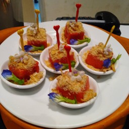 หนึ่งในเมนูแนะนำ พิซซ่าต้มยำซีฟู้ดขอบชาร์โคล มีรสต้มยำแต่ไม่เผ็ด ชาวต่างชาติน่าจะชอบ เราทานเรายังชอบเลย อร่อยสุดๆ 1จานมี 8ชิ้น สามารถกินคนเดียวได้หมด ตอนกลางคืนบรรยากาศดี นั่งริมทะเลมีลม มีการแสดงโชว์เล่นไฟให้ดูระหว่างรออาหารดูเพิ่มเติม