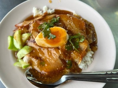 อยากกินข้าวหมูกรอบ ร้านนี้ก็ผุดขึ้นมาเลยค่ะ น้ำราดเยิ้มๆดี หมูกรอบอร่อยมากๆ สั่งเกี๊ยวน้ำมาด้วย เนื้อหมูแดงแน่นๆนุ่มน้ำซุปอร่อย ร้านนี้ราคาไม่แพงค่ะ 40บาท พิเศษ 45บาทค่ะ แต่ที่จอดรถต้องหาจอดเอาตามข้างทางนะคะดูเพิ่มเติม