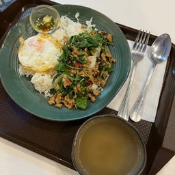หิวข้าวยามดึกก่อนขึ้นเครื่องเลยเดินหาร้านอาหารซึ่งจริง ๆ ก็มีเยอะหลายร้านอยู่ค่ะ แต่คนก็เยอะเช่นกัน เดินมาจนจะเกต F แล้วเจอร้านนี้มีที่นั่งว่างพอดีเลยเข้าร้านนี้ค่ะ 🐽🍳 กะเพราหมูสับไข่ดาว — 205 บาท หมูสับน้อยไปนิดแต่ว่าไข่ดาวทำมาโอเคค่ะ สุกกำลังดีแบบเจาะออกมาเหลว กะเพราแอบเหี่ยวไปหน่อยเลยเหนียวนิดนึง ข้าวสวยให้มาเยอะ ให้พริกน้ำปลาและซุปมาด้วย รวม ๆ แล้วก็โอเคอยู่ค่ะ แม้ราคาจะแรงตาม...อ่านต่อ