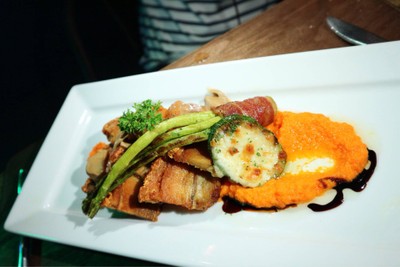 สวัสดีครับเพื่อนๆชาววงในทุกคน กลับมาพบกันอีกแล้ว ได้มีโอกาสไปร่วมงานTop user ดีใจมากเลยครับที่ได้มา ไม่พูดกันมากเรามาแชร์กันเลยดีกว่า เมนูแรกที่ทางห้องอาหารจัดมามีให้เลือก2อย่าง เป็นเมนู appetizer ของผมจะเลือกเป็นอกเป็ดย่างรมควัน เป็นเมนูเรียกน้ำย่อยที่ดีมาก ไม่หนัก มาต่อกันที่อาหารจานหลักกันน่ะครับ ของผมเลือกเป็นหมูอบเครื่องเทศ หมูกรอบที่นี่กรอบมาก ได้เยอะมากดูเพิ่มเติม
