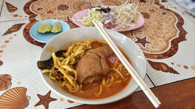 ถ้ามาเชียงรายแล้วอยากกินข้าวซอยต้องร้านนี้ ส่วนตัวไม่แนะนำน้ำเงี้ยวเพราะรสชาติไม่ถูกปาก แต่ข้าวซอยนี่ฟินเว่ออย่าบอกใคร ไก่ตุ๋นนุ่ม ซุปข้าวซอยเข้มข้ยจัดจ้านมาก นอกจากข้าวซอยไก่น่องแล้วยังมีข้าวซอยเนื้อโคขุน ที่ฟินไม่แพ้กันดูเพิ่มเติม