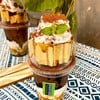 วันนี้แวะมาลองเฉพาะเมนูเครื่องดื่ม ร้านน้ำปั่นอยู่ภายในบริเวณเดียวกับร้านอาหาร ตอนนี้ปรับปรุงเพิ่มพื้นที่ให้ลูกค้าร้านน้ำสามารถนั่งรอ ถ่ายรูปเพลินๆ ระหว่างรอเครื่องดื่ม สั่งมาดื่ม 3 แก้ว ทุเรียนปั่นนมสด แก้วนี้นัวนมมีทุเรียนท็อปด้านบน พอให้สายทุเรียนหายอยาก อโวคาโด้ ถั่วแดง อโวคาโด้ติดขม ทานไม่ได้ขมมาก อีกแก้วเป็นบานอฟฟี่โกโก้ โกโก้เข้มข้น กล้วยหอมกับคาราเมลเข้ากันดีดูเพิ่มเติม