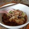 เพิ่งเคยมาร้านนี้เป็นครั้งแรก เห็นมีอาหารหลายอย่างนะ ก๋วยเตี๋ยวเนื้อ ก๋วยเตี๋ยวหมู ข้าวคลุกกะปิ ลองถามที่ร้าน เค้าบอกว่าเคยเปิดเป็นอาหารป่า(สมัยหลายปีมาแลเวว) ต่อมาเป็นข้าวราดแกง แล้วขายก๋วยเตี๋ยวในที่สุด ตอนแรกตั้งใจสั่งก๋วยเตี๋ยวหมู เค้าถามว่า ต้มยำมั้ย เลยสั่งเป็นเส้นเล็กต้มยำ หน้าตาถูกใจมาก ใส่หมูมาชิ้นใหญ่ๆ กินเข้าไปแล้วรู้สึกว่ารสชาติต้มยำเข้มข้นถึงใจ (พิมพ์ๆ อยู่นี่น้ำลายไหล) ราคาก็ไม่...อ่านต่อ