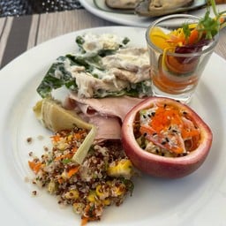 50% ของรีวิวบอกว่าร้านนี้เหมาะกับ ครอบครัวหรือเด็กไปพักที่โรงแรม Pullman Phuket Panwa Beach Resort มาค่ะ ช่วงกลางวันแดดไม่แรง ลมกำลังดีเลยตัดสินใจทานมื้อกลางวันกันที่ Pool Bar ของโรงแรมดีกว่า เลือกนั่งริมสระ ชิลดูทะเลหาดพันวาไป แล้วนอนผึ่งลมเย็นๆ ช่วงกลางวันวันศุกร์ที่โรงแรมมีbuffet lunch จัดที่โซนบาร์นี้ด้วยค่ะ อาหารหลากหลายพอประมาณ ฝรั่งก็มีแนวพิซซ่า ลาซานย่า ไทย ก็มีแนวข้าวกับข้าว ของหวาน ขนมเค้ก ไอติม หัวละ 450B ถ้าใครหิวๆมาก็คุ้มอยู...อ่านต่อ