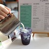 ร้านหาง่ายค่ะ เดินเข้ามาในตึกธนิยะก็จะเห็นเลย เป็นร้านเล็กๆ มีที่นั่งที่เคาท์เตอร์2ที่ พนักงานน่ารักบริการดี ช่วยเทนมให้ตอนถ่ายรูปค่ะ ที่สั่งคือ เมนู signature ของร้าน Blue Marble (60THB) เป็นน้ำอัญชันใส่นม พอใส่นมลงไปจะเป็นลายมาร์เบิ้ลสีฟ้าสวยๆ แต่ในเรื่องของรสชาติมันจะได้รสขม ฝาดๆ เฝื่อนๆ ของอัญชัน ไม่ค่อยโอ คือเอาเป็นว่าให้คะแนนถ่ายรูปสวยพอค่ะดูเพิ่มเติม