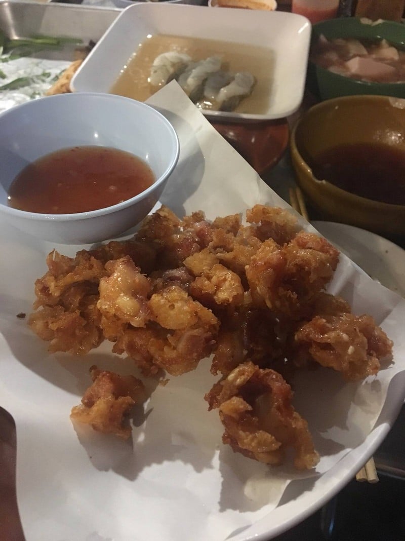 เป็นร้านที่อยู่แถวๆบ้าน ขับรถผ่านมาหลายครั้ง ตั้งแต่ร้านยังเล็กๆจนขยายร้านมีชั้นสอง คนเยอะแน่นร้านตลอดเลยมาช่วงเย็นคือไม่เคยได้แวะ ต้องเปลี่ยนร้านตลอด แต่วันนี้มาค่ำ ฝนปรอยๆด้วย เลยได้มีโอกาสแวะชิมสักที ทีเด็ดคงจะเป็นที่น้ำจิ้มอร่อยระดับนึงค่ะ สั่งอาหารเป็นชุดค่ะ ไม่ใช่บุปเฟ่ ก็สะดวกสบายดีนะคะ ไม่ต้องลุกไปตักเองมีบริการถึงที่ อาหารทานเล่นก็มีค่ะดูเพิ่มเติม