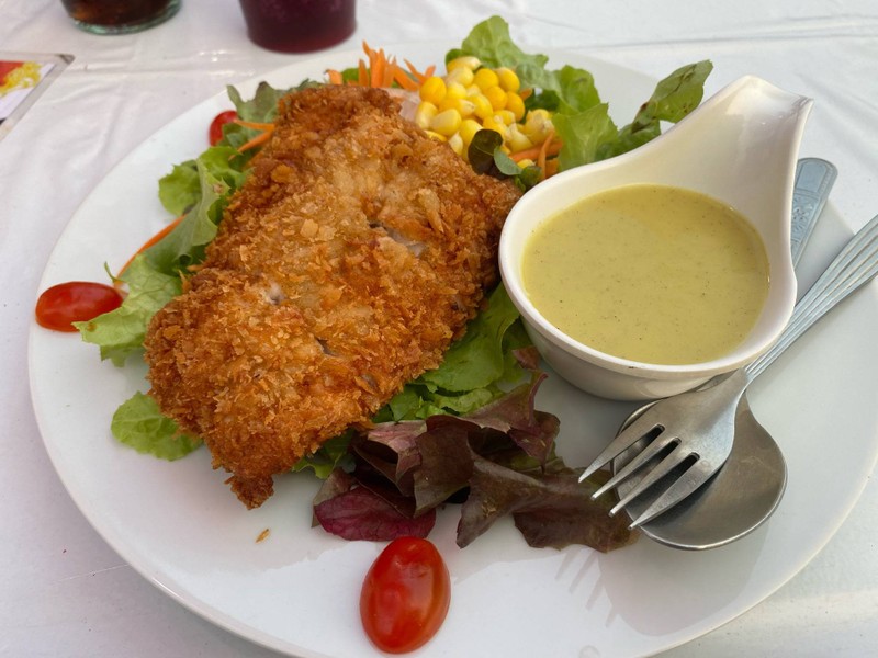ร้านตั้งอยู่ริมถนน จอดรถข้างทาง อยู่ใกล้กับสถานีรถไฟนครสวรรค์ พนักงานบริการค่อนข้างดี อาหารทำใหม่ รสชาติใช้ได้ ราคาอยู่ที่จานละ 40-70บาท ร้านเข้าร่วมโครงการของรัฐบาล วันนี้สั่งเป็น - สลัดปลาทอดกรอบ(60บาท) เป็นปลาชุบแป้งทอดเสิร์ฟพร้อมผักสลัด ข้าวโพด แครอทฝอย หอมและมะเขือเทศ น้ำสลัดแยกใส่ถ้วยมาให้ น้ำสลัดคือได้เยอะมากกๆๆดูเพิ่มเติม