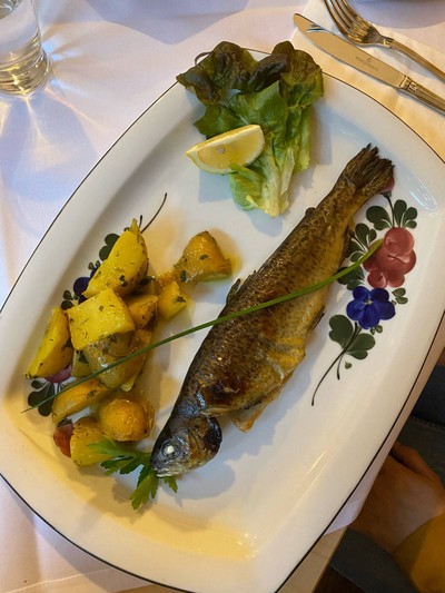 มาร้านนี้เพราะเห็นรีวิวจากที่ไหนซักที่ว่าอาหารอร่อยค่ะ มาถึงHallstatt ต้องสั่งrainbow trout ซึ่งก็อร่อยจริง ปลาสด เค้าบอกว่าตกมาจากทะเลสาบเลย braised porkก็ใช้ได้ แต่Deer medallion เหม็นสาบมากค่ะ ขนาดทานคู่กับข้าวยังไม่สามารถกลบกลิ่นได้ กวางอาจจะไม่ใช่ทางของเราเท่า ไหร่ บริการดี ร้านบรรยากาศดีค่ะดูเพิ่มเติม