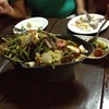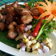 มาทานอาหารที่นี่ ต้องพกความอดทน หรือหาที่นั่ง ทำเลไกลๆลำโพงหน่อย ถ้าใครไม่ชอบเสียงร้องคาราโอเกะสดแบบเรา แต่ก็ไม่ได้เลวร้ายอะไรมากมาย เพราะให้อภัยอาหารอร่อยมาเริ่มกันที่ไข่ผัดแหนมอาหารธรรมดาๆแต่อร่อย ผัดมาแบบหอมมาก ไก่คั่วเกลือรสเค็มนิดๆไก่กรอบนอกนุ่มในอร่อย เมนูต้มยำก็ใช้ได้ต้มยำทะเลเหมือนยกทะเลมาไว้ในหม้อ ชิ้นใหญ่ไม่ได้ไก่กาน้ำต้มยำหอมและแซ่บมาก ยําปลาดุกฟู ก็อร่อยทำมาได้แบบไม่อมน้ำมัน น้ำย...อ่านต่อ