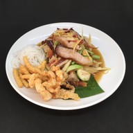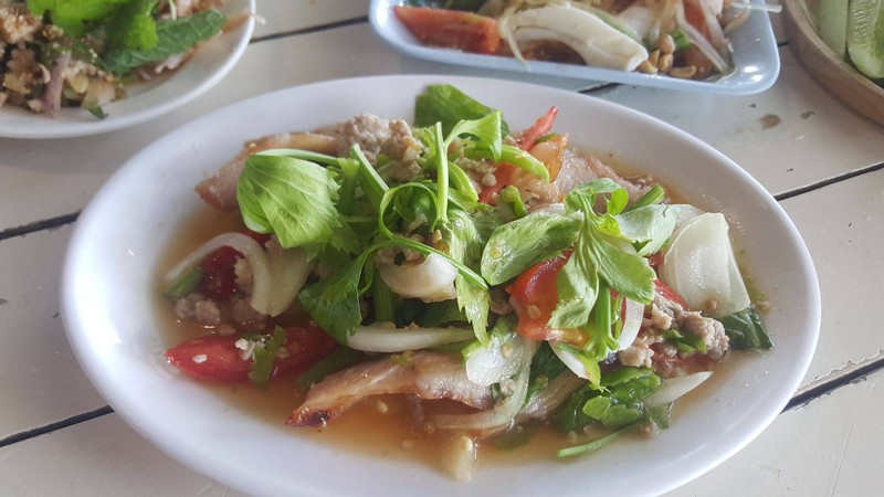 คือดูจากการจัดร้านแล้ว อาจจะคิดว่า รสชาติอาหารอาจจะรสความจัดจ้าน แต่ขอบอกเลยว่า มันไม่ใช่ แต่ละอย่างรสชาติจัดจ้านเด็ดขาด กินในห้องแอร์ก็ดี เหงื่อจะได้ไม่แตก ตัวเมนูที่ผมชอบ 1. คอหมูย่าง แบบละมุนลิ้นมาก น้ำจิ้มลงตัว 2. ต้มแซ่บเอ็นแก้ว มันส์แซ่บหลายสมชื่อ เอ็นแก้วไม่นิ่มจนเกินไป ให้การกรุบกรอบ ได้ลงตัว 3. ส้มตำหอยดอง คุณภาพหอยดองดีมาก ไม่เหม็น ตำได้ลงตัวมาก ห้ามพลาด ราคาแพงกว่า ข้างทางนิด แต่ความ...อ่านต่อ