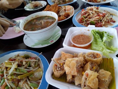 ร้านส้มตำข้างทางที่แซ่บมาก ราคาถูกมาก -ตำป่า 25บ.(มีที่ไหนอีก) -ตำซั่ว 25บ. -ตำปูปลาร้า 25บ. -ไก่ทอดชิ้นละ30 (วันเราไปเหลือ2ชิ้นสุดท้ายเหมือนมันจะชิ้นเล็กไปหน่อยนะ แหะๆ) -ข้าวเหนียว จานละ10บ. ทางร้านติดป้ายราคาชัดเจน(ตบมือให้ แปะๆ) สั่งไปแป๊บเดียว อาหารก็มาครบ แต่ทางร้านมีแต่เมนูส้มตำกับไก่ทอดนะคะ อาหารอีสานอย่างอื่นบ่มีเด้อค่ะดูเพิ่มเติม