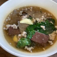 ต้มเลือดหมูจันทบุรี ทั้งร้านมีเมนูเดียวคือ ต้มเลือดหมู ราคาเริ่มต้น 50฿ ข้าวเปล่า 10฿ ต้มเลือดหมูรสชาติน้ำซุปเค็มไปนิดนึงค่ะ เครื่องปรุงไม่มีน้ำส้มสายชูให้ แต่มีน้ำจิ้มเต้าเจี้ยว (แบบน้ำจิ้มร้านข้าวต้มทั่วไป) ร้านนี้ทำแบบปั่นละเอียด พอนำมาปรุง ต้องบอกว่า มันไม่เข้ากันเลยย แต่ที่ชอบคือเครื่องใน สะอาด ไม่มีกลิ่นคาวเลยดูเพิ่มเติม