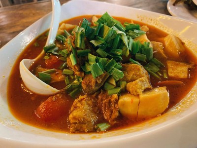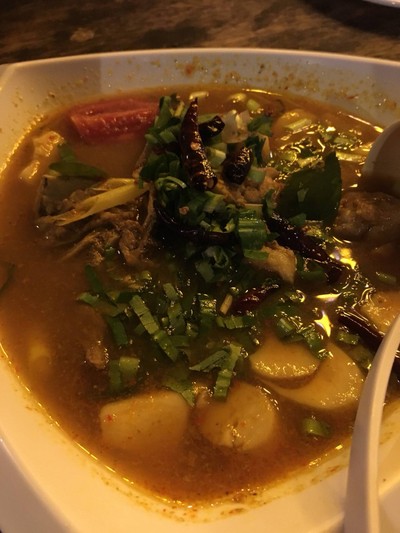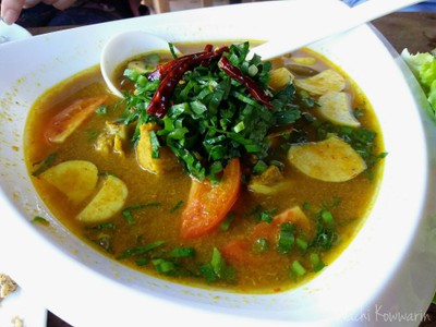มาบ่อเกลือหลายรอบเพิ่งมีโอกาสมาลองฝีมือ ร้านบ้านๆ ทางเข้าอยู่ตีนสะพานฝั่งตรงข้ามปองซา ทางเล็ก ป้ายไม่ชัด ตั้งใจแล้วก็ลองเข้ามา ยิ่งซอยเข้าร้าน ไม่สิ ตรอกเข้าร้านเหมาะกว่า เล็กมาก มองดีๆละกัน ข้างในมีลานจอดได้หลายคันอยู่ เรามาต้นฝน วันธรรมดา บ่ายๆ ไม่มีใครแม้แต่พ่อครัว ใครเจอแบบนี้อย่าเพิ่งถอดใจอาจจะพลาดของดี มีป้ายเบอร์โทรติดอยู่ โทรซิ มือถือมีนี่ ช่วงรอก็ลงไปเล่นกับปลาในลำธารก่อน แป็...อ่านต่อ