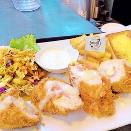 ร้านอาหารน่ารักๆ มีเครื่องดื่มและขนมหวานด้วย เมนูที่ลองทานวันนี้ คือ 1. Mix taste me เป็นเมนูทานเล่น ที่รวมของทอดมาไว้ด้วยกัน : ชีสทอด เฟรนฟราย นักเก๊ตไก่ ไก่แซ่บ ไก่ตะกร้า(เป็นปีกไก่ทรงเครื่องทอด ส่วนตัวชอบอันนี้ อร่อยดีค่ะ) 2.สปาเกตตี้พริกแห้งเบค่อน เมนูนี้อร่อยลงตัว 3. ขาหมูเยอรมัน กรุบกรอบดี เสิร์ฟมาพร้อมกับสามน้ำจิ้ม รสชาดดีแต่ปริมาณน้อยไปหน่อยแต่ถ้าเทียบกับราคาถือว่าโอเคค่ะ 4. สลัดป...อ่านต่อ