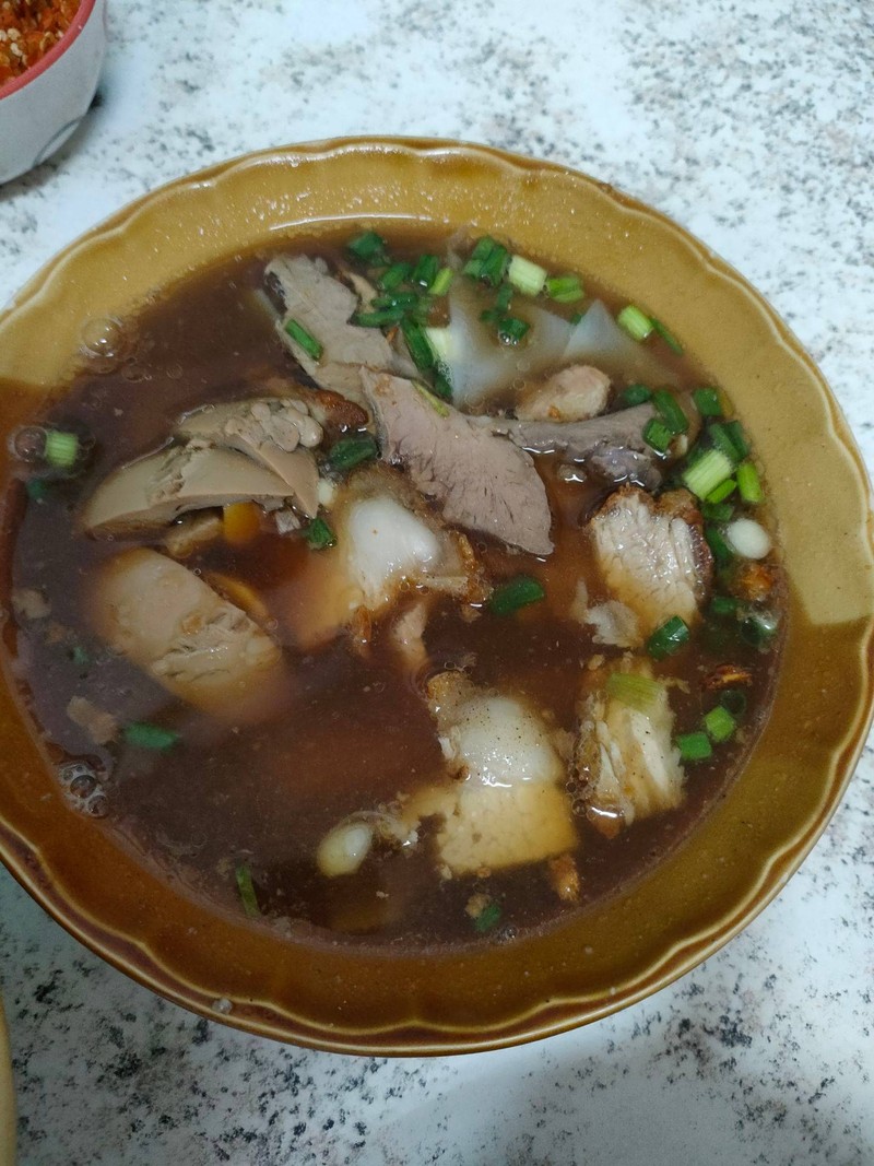 คิดว่าร้านน่าจะเปิดตั้งแต่ก่อนแปดโมงเช้า เพราะว่าวันที่ไป แค่ตอนเก้าโมงเช้าก็เกือบหมดแล้ว😅 ถึงร้านเก้าโมง นั่งกินยังไม่ทันหมดชามก็ได้ยินทางร้านตอบลูกค้าว่าหมดแล้ว ขายดีเบอร์ไหนเนี่ย😱 ตัวเส้นไม่จับกันเป็นก้อน เส้นไม่หนา กินอร่อย น้ำซุปไม่ข้นจนเกินไป กลิ่นเครื่องพะโล้ไม่แรงแบบภาคกลาง ไม่รู้ว่าใส่อะไรบ้าง แต่เครื่องในรสชาติดี พริกน้ำส้มเครื่องปรุงก็แซ่บซี้ด แค่ปรุงพริกน้ำส้มกับพริกไทยก็อร่อยเด็...อ่านต่อ