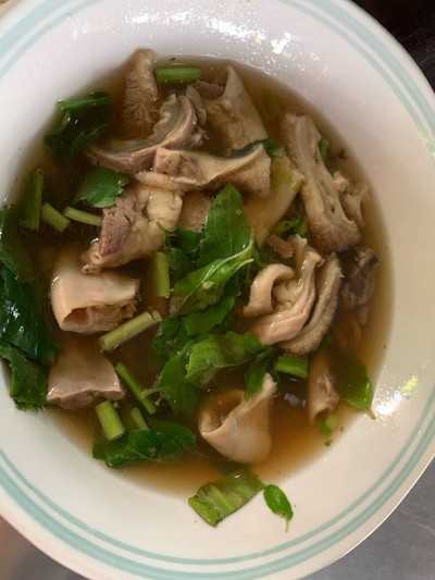 ขับรถมาจากจอมบึงเพื่อมาทานที่นี่ก่อนกลับกรุงเทพฯ ตามรอยจากอาสาพาไปหลงบน youtube มาถึงร้านตอนบ่าย 2 คนน้อยแล้ว เมนูที่สั่งคือเกาเหลาต้มแซ่บเนื้อลวกจิ้มและไข่เจียว ทานกัน 2 คนแทบไม่หมด อร่อยดีครับแนะนำให้สั่งเนื้อเปื่อยต้มยำ เนื้อสดกับลวกจิ้มเหนียวนิดหน่อยแต่พอรับได้ ราคามิตรภาพคนละร้อยกว่าบาทอิ่มแปล้เลยดูเพิ่มเติม