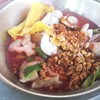มาทานร้านนี้ในช่วงวันหยุดยาว ตอนเข้าไปนั่ง คิดว่ารอไม่นาน แต่ สั่งเกี๊ยวน้ำไป 2 ชาม รอนานกว่าครึ่งชั่วโมงค่ะ ร้านอยู่ตลาดภาคกลางคืน ในองค์พระปฐมเจดีย์ เป็นอีกร้านที่ลูกค้าอุดหนุนเยอะ รายการอาหารของร้าน มี เย็นตาโฟ ข้าวต้ม ปลาลวกจิ้ม เกี๊ยวกุ้ง ฯ รายการที่สั่ง เกี๊ยวกุ้งน้ำ (55 บาท) หน้าตาชวนทาน ไส้เกี๊ยวเยอะ ไม่หนักกุ้งเป็นหมูเสียมาก แผ่นเกี๊ยวหนา ลวกไม่นุ่มเท่าไหร่ เครื่องแน่น ลูกชิ้นหมู เ...อ่านต่อ