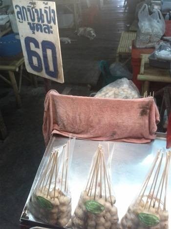 ข้อมูลที่ลงรีวิวเป็นความเห็นส่วนตัวที่่ได้พบเจอมานะคะ ร้านอยู่ตลาดส่วนแรก ถ้าจำไม่ผิด เลี้ยวตามทางเดิน เลี้ยวแรกจะเจอร้านอยู่ซ้ายมือเลย ไม่มีให้ชิม แต่เป็นลูกชิ้นปิ้งที่ดูเก่าแก่ ร้านดูดั้งเดิม ขลังๆ (555 รู้สึกไปเอง) น่าลองทานดี ไม้ละ 6 บาท ลูกใหญ่เต็มคำกว่าเจ๊นิด น้ำจิ้มหวานๆเผ็ดๆ ปิ้งแล้วลูกชิ้นจะแห้งๆขึ้นมาหน่อยๆด้วย อร่อย ไม่แป้ง เนื้อแน่นๆ กินแล้วรู้สึกถึงเนื้อหมูเน้นๆเหมือนกันค่ะดูเพิ่มเติม