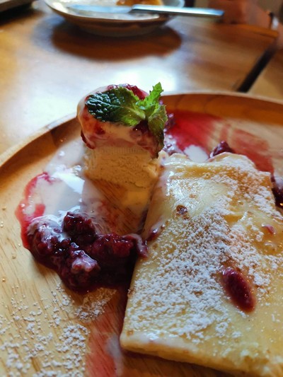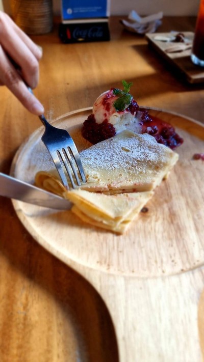 ร้านมีต้นไม้ใหญ่ มีที่นั่ง ที่จอดรถของร้านบ้างอาจไม่มาก ต้นไม้ใหญ่ทำให้บรรยากาศดี มีทั้งกาแฟ เบเกอรี่ อาหาร เห็นว่าแพนเค้กดังหนานุ่มดี เครปอร่อย เครื่องดื่มไม่เลวร้าย ราคาเครื่องดื่มไม่สูงมากดูเพิ่มเติม