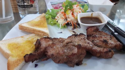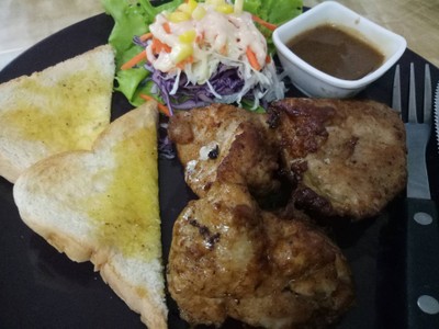 ภายในร้านแบ่งเป็น2 โซนครับ คือโซนหน้า กับโซนใน แต่ติดแอร์ทั้ง2โซน สังเกตุโซนหน้าไม่เปิดแอร์สองครั้งแระครับ มาครั้งนี้นั่งโซนในเสียงดังหนวกหูมาก เพราะร้านตั้งโต๊ะมากไปรึป่าว เวลาคุยกันได้ยินกันหมดเลยทั้งร้าน แล้วไม่เปิดเพลงเลย สั่งอาหารดังนี้ 1.สเต๊กหมูพริกไทดำ มีขนมปังปิ้ง1แผ่น สลัดผัก1น้ำเกรวี่1 รสชาดดีครับ หมูชิ้นใหญ่ด้วย 2.กะเพราทะเล 60.-ใส่น้ำมันเยิ้มนองเลยครับ แล้วให้ลูกชิ้นปลามาเพียบเลย เ...อ่านต่อ