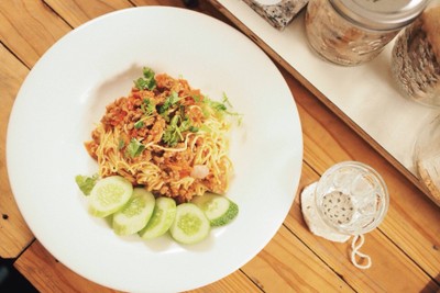 ร้านนี้อยู่ไม่ไกลจากนิมมานมาก อยู่ในหมู่บ้านเพนกวินที่มีร้านกาแฟกับร้านขายของกระจุ๊กกระจิ๊กอยู่ข้างหน้า จะบอกว่าชอบร้านนี้มากกก ส่วนตัวเป็นคนไม่ชอบกินอาหารแล่แข็งหรืออาหารที่ทำไว้แล้ว อันนี้คือฟินสุด ได้นั่งดูทำกันสดๆยันเส้นพาสต้าเลย เราสั่งมาทั้งหมด 3 อย่าง Bolognese Pasta 100฿ Bacon & Dried Chili Pasta 100฿ พิชซ่า(ทอปปิ้งตามใจเด็ก) 200฿ ดีหมดทุกอย่าง อาจจะรอนานนิดนึง แต่เรานั่งที่บาร์ดูเข...อ่านต่อ