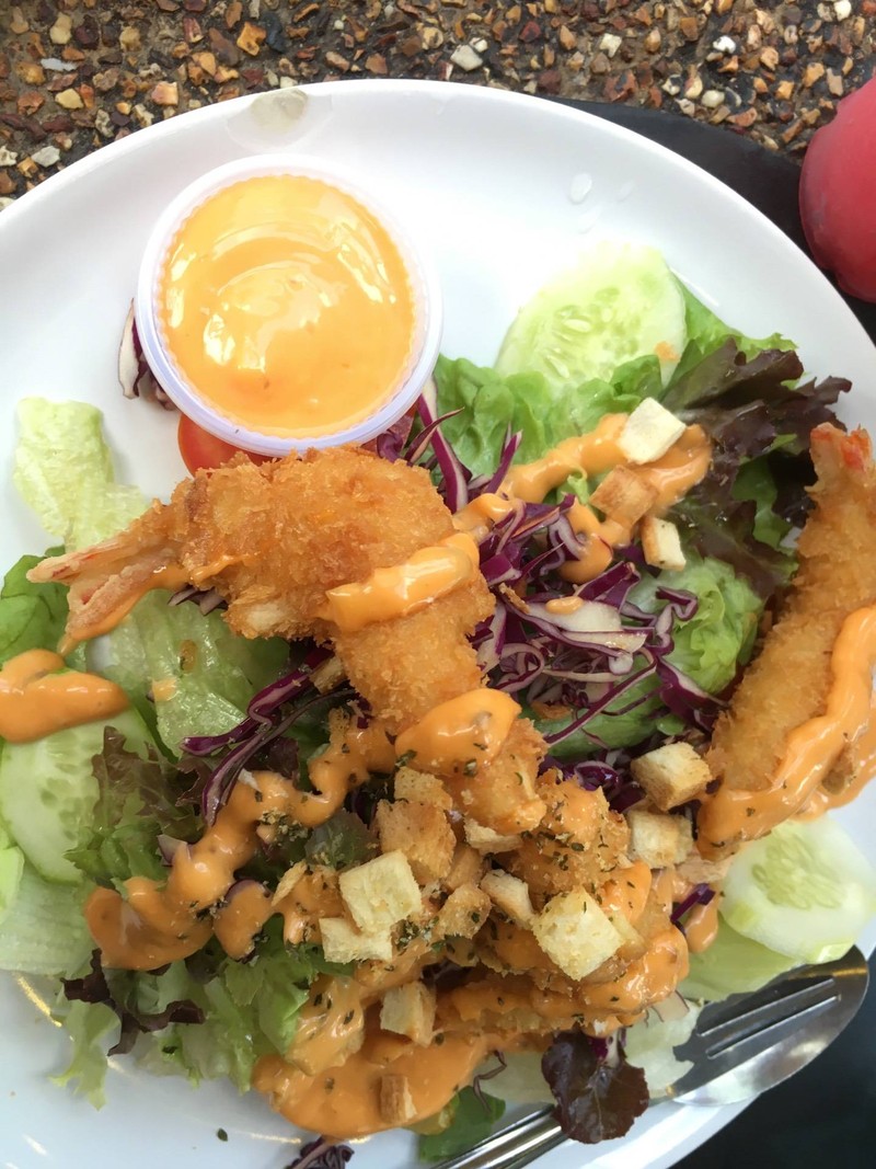 ร้านนี้เป็นอีกร้านนึงที่อยู่ด้านหลังมช.ซอยแจ่มฟ้า และเราผ่านไปผ่านมาบ่อยมากแต่ไม่เคยมาแวะ วันนี้เลนมีโอกาสได้มาลองเนื่องด้วยเพื่อนลากมากินข้าว5555 แต่เรายังไม่ค่อยหิวมทกเลยสั่งสลัดกุ้งทอดมาลองกับน้ำแตงโม เริ่มด้วยสลัดกุ้งทอดโดยเสิร์ฟมาในจานที่ค่อนข้างใหญ่พอสมควรรสชาติถือว่าพอใช้ได้กับราคา 39 บาทแต่เราขอหักคะแนนตรงกุ้งทอดเพราะกุ้งไม่มีการแกะเปลือกหรือหัวอ่ะไรเลยและเราโดนหนวดกับหัวกุ้งทิ่มตอนเคี้...อ่านต่อ