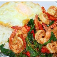 กระเพรากุ้งราดข้าว+ไข่ดาว