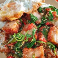 กระเพราหมูกรอบราดข้าว+ไข่ดาว