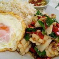 กระเพราปลาหมึกราดข้าว+ไข่ดาว