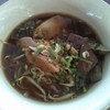 เป็นร้านก๋วยเตี๋ยวเป็ดริมทาง ต้องจอดรถริมถนน มีร้านอาหารไล่เรียงกันไปอีกหลายร้านให้เลือกทาน ลองชิมก๋วยเตี๋ยวเป็ด(40.-) เป็ดหั่นแล่มาชิ้นใหญ่ มีเครื่องใน เลือดพร้อม เลือดอร่อยครับ หนึบๆไม่มีกลิ่นคาว จะสั่งมาทานเล่น ก็หมดซะแล้ว อยากให้น้ำซุปหอมและมีรสชาติมากว่านี้จะอร่อยมากครับ ข้าวหน้าเป็ด พอทานได้ครับ เครื่องในรวม นิ่ม หนุบๆไม่เหนียว โดยรวมก็ปานกลางครับ ทานได้ มื้อรีบๆด่วนๆก็เป็นร้านทางเลือกอีก...อ่านต่อ
