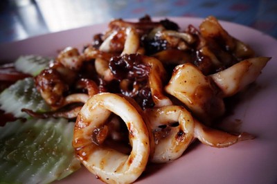 ผ่านมาได้เวลาพอดีก็แวะจัดกันไป หมึกผัดกะปิ เมนูนี้รางวัลชนะเลิศด้วยพระราชทาน ปลาทูซาเตี๊ยะ หอยหลอดผัดฉ่า กุ้งอบเกลือ วันนี้มาคนทยอยออกไปแล้ว เมื่อวานป้าบอกคนเล่นเก้าอี้ดนตรีกันเลย...มีปลากุเลาแดดเดียว อร่อยมาก โลละ 380-400 บ. ปลาทูแดดเดียวก็มีให้เลือกซื้อกลับบ้านดูเพิ่มเติม