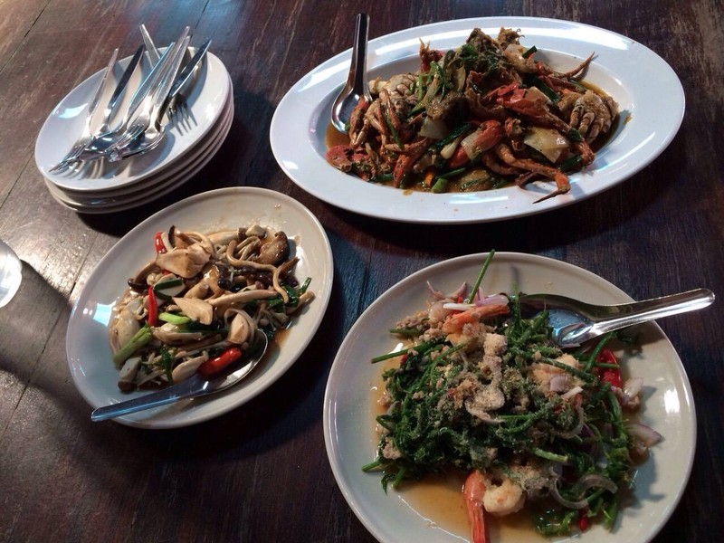เนื่อวจากมาเที่ยววันธรรมดา นักท่องเที่ยวเลยไม่แออัดมาก ช่วงเที่ยงแวะร้านนี้ดูสักหน่อยค่ะ จะสั่งปู แต่ไม่มี เราสั่งยอดฟัวแม้วผัดน่มันหอยมา 60฿ รสชาดดีค่ะ ผักสดดี จานนี้แนะนำ แต่ปลาเนื้ออ่อนทอด รสซอสมะขาม 220฿ ผิดหวังค่ะ ปลาทอดมาแห้ง กรอบมากไป น้ำซอสมะขามรสชาดไม่อร่อย รสชาดเหมือนกับน้ำไข่ลูกเขยที่หวานๆ ไม่ได้ปรุงอะไรเลยดูเพิ่มเติม