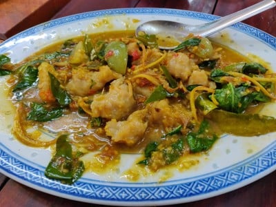 🥬 คะน้าปลาเค็ม (200฿) เป็นคะน้าปลาเค็มที่เปิดโลกมาก แทนที่เค้าจะผัดปลาเค็มลงไปกับคะน้า อันนี้เหมือนเค้าเอาไปบดแล้วปรุงใหม่ให้มีความกลมกล่อมขึ้น แล้วถึงไปทอดแล้วมาราดกับคะน้าอีกที เป็นคะน้าปลาเค็มที่อร่อยไปอีกแบบ 🐟 ทอดมันปลากราย (250฿) เนื้อทอดมันมีความเหนียวนุ่ม อร่อยมาก จานนี้ห้ามพลาด 🔥 ต้มยำปลาคัง หม้อไฟ (300฿) ขอเป็นหม้อไฟไป แต่ทางร้านไม่มีแอลกอฮอล์มาจุดให้ แต่ไม่เป็นไรเพราะน้ำต้มยำคือดีม...อ่านต่อ