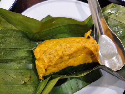 ห่อหมกปลาทะเล(ปลามง) รองด้วยใบชะพลู บรรจุ 1 ห่อ ราคาอาหารรวมภาษีมูลค่าเพิ่มแล้ว