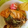 สำหรับก๋วยเตี๋ยวต้มยำ รสชาติน้ำก๋วยเตี๋ยว ไม่ต้องปรุง มีความเผ็ดหลายระดับให้เลือก เครื่องเคียงก๋วยเตียว ปลาเส้นอร่อยไม่คาวไม่เค็ม ลูกชิ้นหมูอร่อยหนึบกำลังดี ส่วนไข่ บางฟองเป็นไข่มะตูมพอดี แต่บางฟอง ไข่ขาวบางส่วนดิบ ตัวเส้น เส้นเล็ก ติดกันเป็นก้อนเลยค่ะ ส่วนบะหมี่เหลือง ใช้ได้แต่ไม่ใช่บะหมี่ไข่นะคะ ก๋วยเตียวน้ำใส น้ำซุปค่อนข้างหวาน ถ้าเป็นของกินเล่น ลองสั่ง ถุงทองกุ้งทอด ไส้อร่อย ตัวแป้งห่อเ...อ่านต่อ
