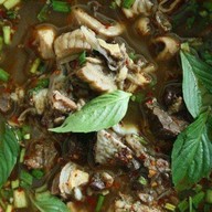 เล็งร้านนี้ไว้หลายครั้ง และก็เกือบทุกครั้งที่มาก็คิดว่าจะต้องมาชิมให้ได้แต่สุดท้ายก็ถูกเพื่อนฝูงบ้าง น้องๆบ้างลากไปที่ร้านอื่นๆตลอดเลย คราวนี้มีเวลาเป็นส่วนตัวเพราะแอบมาเลยได้โอกาสเดินดิ่งไปชิม สั่งแค่อย่างเดียวเองคือลาบปลานิล พร้อมกับข้าวเปล่า เมนูนี้เคยติดใจเป็นอย่างมากตอนไปที่สามเหลี่ยมทองคำและเจอกับร้านข้างทางที่ทำอร่อยมาก แต่ร้านนี้ก็ทำออกมาไม่เลวทีเดียวแต่เป็นคนละสูตรและคนละหน้าตาดูเพิ่มเติม