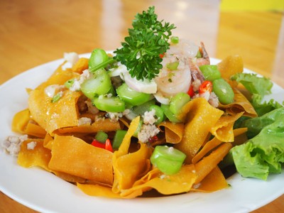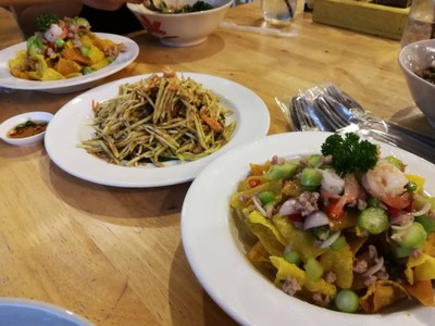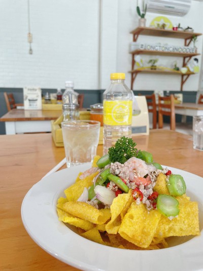 ร้านตั้งอยู่ในซอยนิมมาน ตามmap เข้ามาเลย มีที่จอดกว้างขวาง ที่นั่งมีทั้งด้านในและด้านนอก เลือกนั่งได้ตามอัธยาศัย อาหารรอไม่นาน มาเสริฟเกือบพร้อมกันทุกเมนู แต่อาหารไม่ร้อนจัด ยำอองตอง ยำเกี้ยวใส่ก้านคะน้า ยำในรสกลมกล่อมเด็กทานได้ ไม่จัดจ้าน ทานได้เรื่อยๆ เมนูอื่นรสชาติธรรมดา ไม่ได้โดดเด่น จะมีเกี้ยวทอด กลมกล่อม ทอดออกมาแป้งสีเหลืองนวล อร่อย วันที่ไปทานทางร้านมี โปรโมชั่น ถ...อ่านต่อ