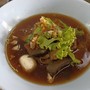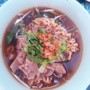 รสชาติน้ำซุบอร่อย แต่ที่ร้านมีน้ำซุบแบบเดียว ไม่มีต้มยำ และเนื้อ รสชาติเด่นของร้านจะเป็นหมูตุ๋น คุณภาพเนื้อหมูค่อนข้างดี ผมเป็นคนทานเผ็ดไม่เป็น เลยตอบรสชาติของส่วนพริกเผาไม่ได้ ถือว่าเคยเป็นร้านดังแถวสนามบินน้ำ ปัจจุบันหาที่จอดรถค่อนข้างยาก สำหรับคนชอบหมูตุ๋น แนะนำให้มาลองดูเพิ่มเติม