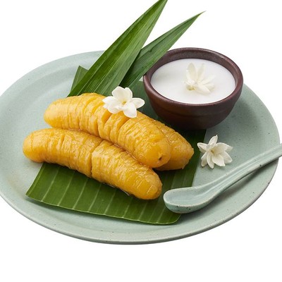 กล้วยไข่เนื้อแน่นผ่านการเชื่อมจนสุกนิ่ม รสชาติหวาน สามารถเพิ่มระดับความมันด้วยหัวกะทิ เมนูขนมหวานแบบไทยโบราณ