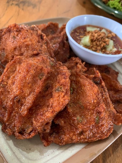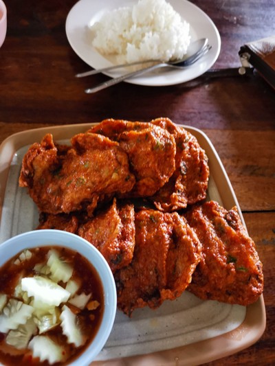 มากาญจนบุรีแวะทานอาหารกลางวันก่อนไปน้ำพุร้อนหินดาด อาหารที่นี่เป็นอาหารไทย ก่อนสั่งอาหารสอบถามเรื่องเมนูแนะนำ พนักงานบอกว่าพึ่งได้ปลายี่สกมาใหม่ๆ ปลาชนิดนี้นานๆจะได้มาที เลยลองต้มยำปลายี่สก ไข่เจียวผักหวาน ส้มตำปู และทอดมันปลากราย ต้มยำปลายี่สก รสต้มยำกำลังดี ไม่เปรี้ยวนำจัดจนเกินไป เผ็ดแซ่บใช้ได้ เนื้อปลาสดมากสมราคาคุย ไข่เจียวผักหวาน อันนี้ฟู+นุ่มกำลังดี ไม่ได้ฟูฟ่องอย่...อ่านต่อ