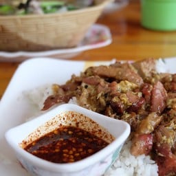 ร้านหมูย่างในตำนาน ย่างหมูเป็นกะละมังทุกเช้า ขายตั้งกะเช้า ~7 โมงเช้ายันเย็นจนของหมด ~4-5 โมง ช่วงกลางวันนี่พีคสุด แต่อาหารได้ไวเลยจะเห็นคนเข้าออกจากร้านตลอดเวลา ร้านตั้งอยู่เวิ้ง NU plaza เลี้ยวเข้ามาอยู่ตรงข้าม KFC อาหารหลากหลายเมนูตามสั่งทั่วไป ส่วนอาหารเด่นที่คอหมูย่างไข่ขยี้ คอหมูย่างยำ และที่เด็ดแปลกคือ เขียวหวานหมูย่าง (35.-) เป็นคอหมูย่างหอมๆ ผัดน้ำพริกและเครื่องเขียวหวาน หยอดด้วยกะทิ...อ่านต่อ