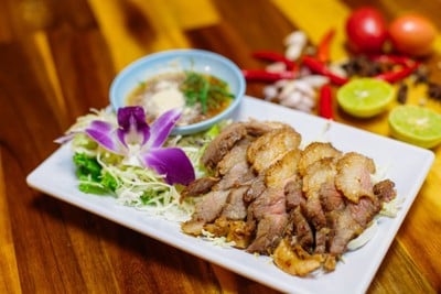 ก็มีควาทแปลกใจเลย คือมองจากภายนอกขับรถผ่านไปมา คิดว่าร้่านคงมีบริเวณไม่กว้างขนาดนี้ แต่พอเค้าไปจริงๆ อ้าวเค้ามีให้นั่งหลายโซนนี่นา มีซุ้มให้นั่งโดยรอบ ติดลำธาร หรือใครอยากนั่งลานใต้ร่มไม้ ก็ดีนะคะ น่านั่งมีชิงช้า มีเปล ตกแต่งร้านเก๋ๆมีมุมถ่ายรูปด้วย อาหารก็รสชาติดีนะคะ เสือร้องไห้อร่อยดีค่ะดูเพิ่มเติม