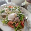 ขึ้นชื่อว่ามือวางอันดับ 1 ของเมืองกาญ สมคำร่ำลือ ไก่ซัดเกลือ - ไก่เอาไปนึ่งก่อนแล้วเอามาทอด หนังกรอบ เนื้อแน่นๆแต่ไม่ถึงกับเหนียว โรยดอกเกลือมา เด็กกินได้ผู้ใหญ่กินดี ปลาคังนึ่งซีอิ้วน้ำมันงา - สั่งตามรอยนักชิมที่ติดตาม แต่กลับรู้สึกเฉยๆซะงั้น กุ้งผัดสะตอ - พอใช้ได้ แต่ไม่ได้ชอบสไตล์นี้เท่าไหร่ จะหอมกะปิ ออกรสหวาน ไม่ใช่แนวใต้ หัวปลาต้มเผือก - เผือกร่วนดี น้ำซุปหวานธรรมชาติ พอใช้ได้ ยังไม่ไ...อ่านต่อ
