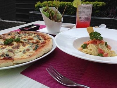 50% ของรีวิวบอกว่าร้านนี้เหมาะกับ ปาร์ตี้ เที่ยวร้านอยู่ชั้น 7 ของโรงแรมครับ เห็นวิวราชเทวี แต่น่าเสียดายที่หน้าต่างฝั่งเห็นวิว ดันค่อนข้างร้อน เพราะอยู่ทิศตะวันตก เรื่องรสชาติอาหารเนื่องจากลูกค้าโรงแรมนี้ส่วนใหญ่จะเป็นเอเซีย รสชาติอาหารจึงไม่จืดมากเหมือนหลายๆโรงแรมที่เน้นลูกค้าฝรั่ง อย่างซอสพาสต้าก็รสชาติเข้มข้น หอมอร่อยมากครับ แต่กลายเป็นว่าพวกBurgerกับPizza รสชาติยังไม่โอเท่าไหร่ อย่างพิซซ่านี่ออกแนวเอาข้าวแกงมาโปะกินกับขนมปังย...อ่านต่อ