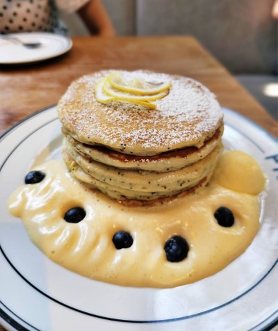 (buttermilk pancakes with ricotta, poppy seed and lemon curd)