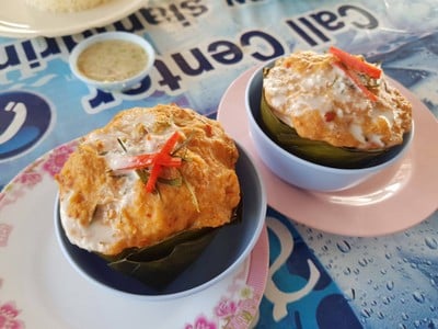 วันนี้มาจ.ปทุมธานีเร็วหน่อยเลยนัดเพื่อนทานร้านนี้อีกครั้ง เพราะเป็นทางผ่านไปรังสิตด้วย จริงๆมาทานสามสี่ครั้งแระ แต่เม้ามากกว่าเลยไม่ค่อยได้เก็บรูปมารีวิว วันพุธตอนเที่ยงครึ่ง มาถึงก้อเห็นมีลูกค้านั่งราวๆ 6 โต้ะแระ อากาสเย็นสบายดี ผมมาที่นี่ทุกครั้งต้องสั่ง 1.ห่อหมกปลาช่อนหรือปลากรายครับ กระทงละ 40.-อร่อยมาก มีใบยอกับโหระพา ปลาเป็นชิ้นๆไม่มีก้างเลย 2.ลูกชิ้นปลากรายผัดพริกแกง 120.- จานเล็กจังเลย ...อ่านต่อ